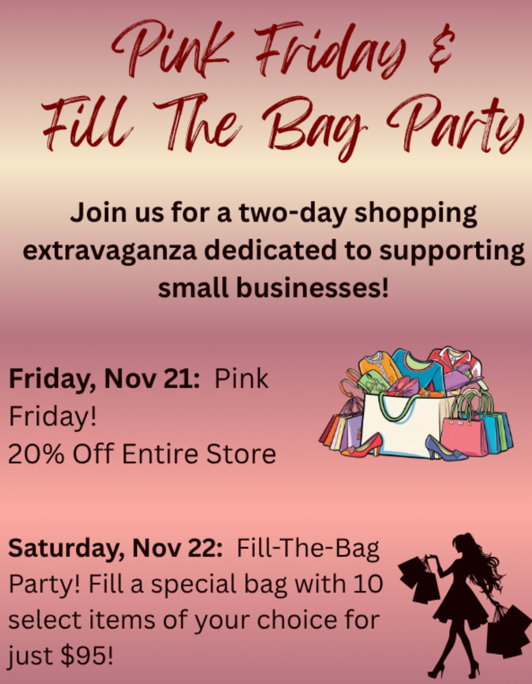 Come join us for Pink Friday — the celebration of shopping small and supporting local boutiques! 💕