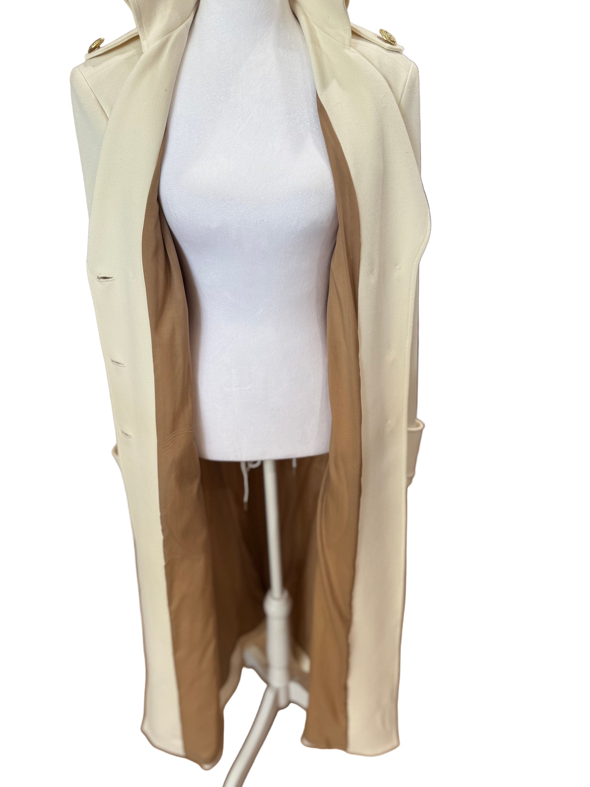 Babylon Military-Inspired Longline Coat – Ivory with Gold Buttons